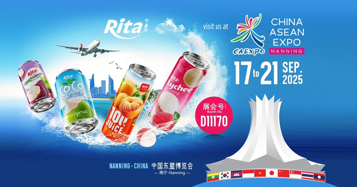 Rita Beverage proudly participates in CAEXPO Nanning 2025, showcasing tropical fruit juices, coconut water, sparkling drinks, and more. Visit us at Booth D11170 from September 17–21, 2025 in Nanning, China, and explore our innovative beverage solutions, OEM & ODM services, and global partnerships.