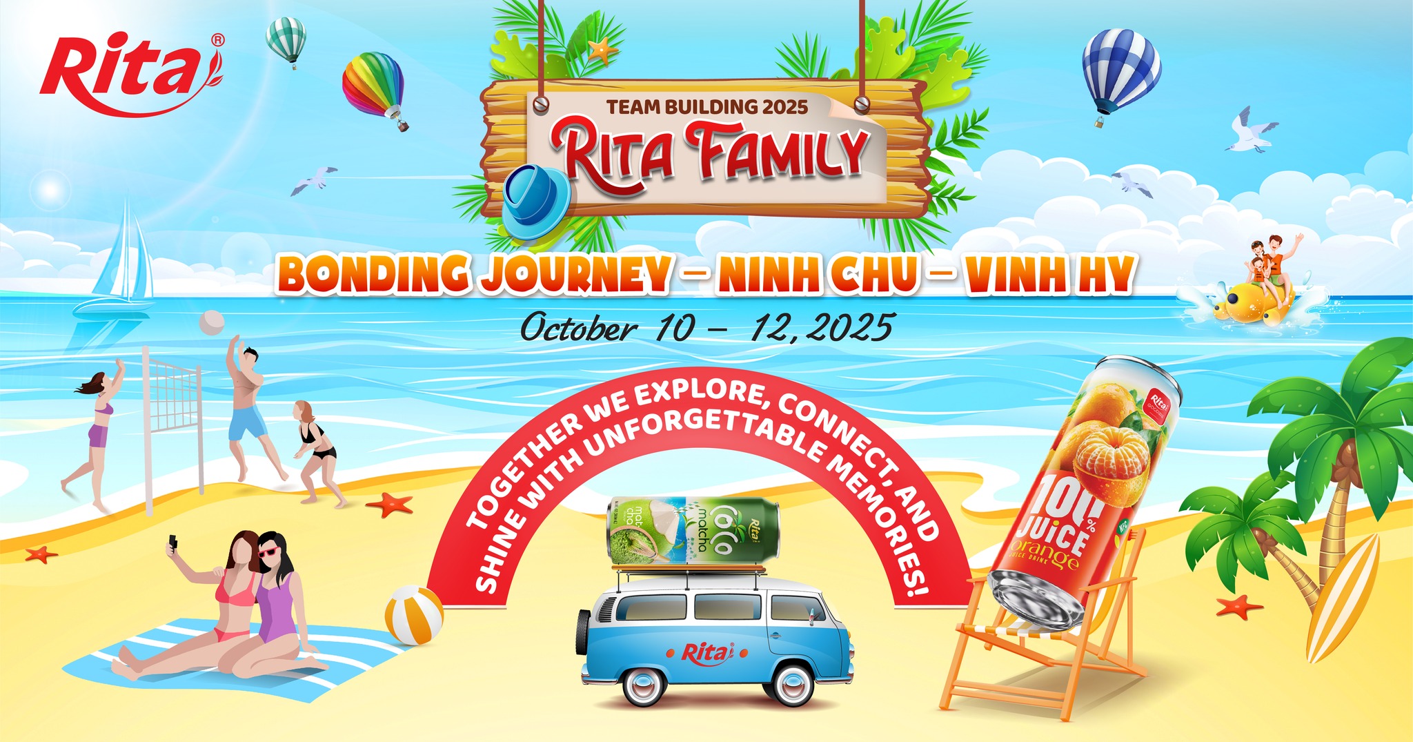 From the rolling waves of Ninh Chử to the stunning coral of Vĩnh Hy Bay, Rita Food & Drink Co., Ltd embarked on a remarkable 2-day, 2-night journey to celebrate teamwork, connection, and gratitude — a trip that perfectly blended adventure, laughter, and appreciation.